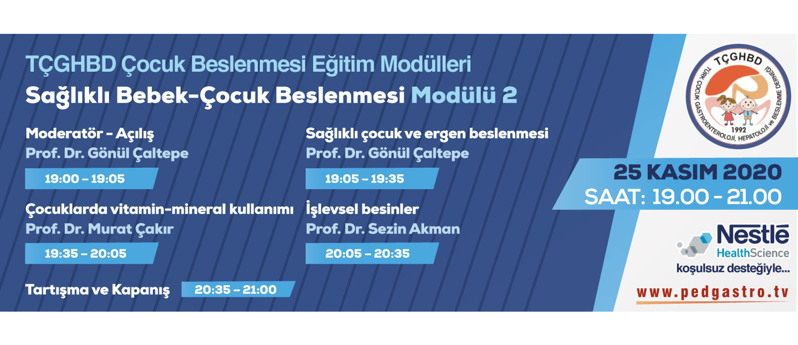25 Kasım 2020 TCGHBD Çocuk Beslenmesi Eğitimi Modülleri: Sağlıklı Bebek-Çocuk Beslenmesi Modülü 2