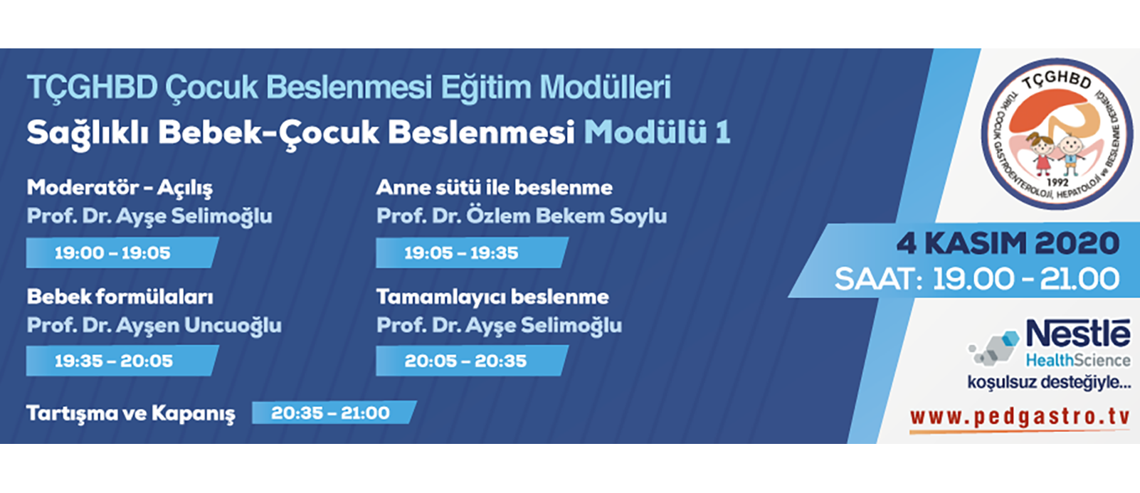 4 Kasım 2020 TCGHBD Çocuk Beslenmesi Eğitimi Modülleri: Sağlıklı Bebek-Çocuk Beslenmesi Modülü 1